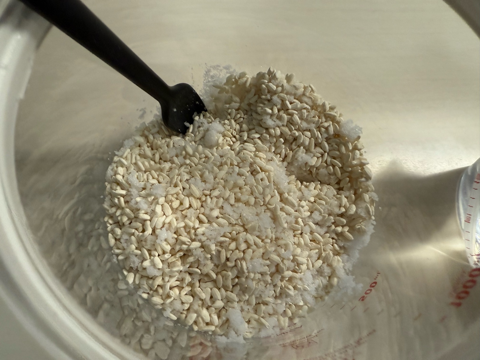 水の量が少ないかも?と思ったけど足りていて、麹の粒も簡単につぶれる柔らかさになっていたので