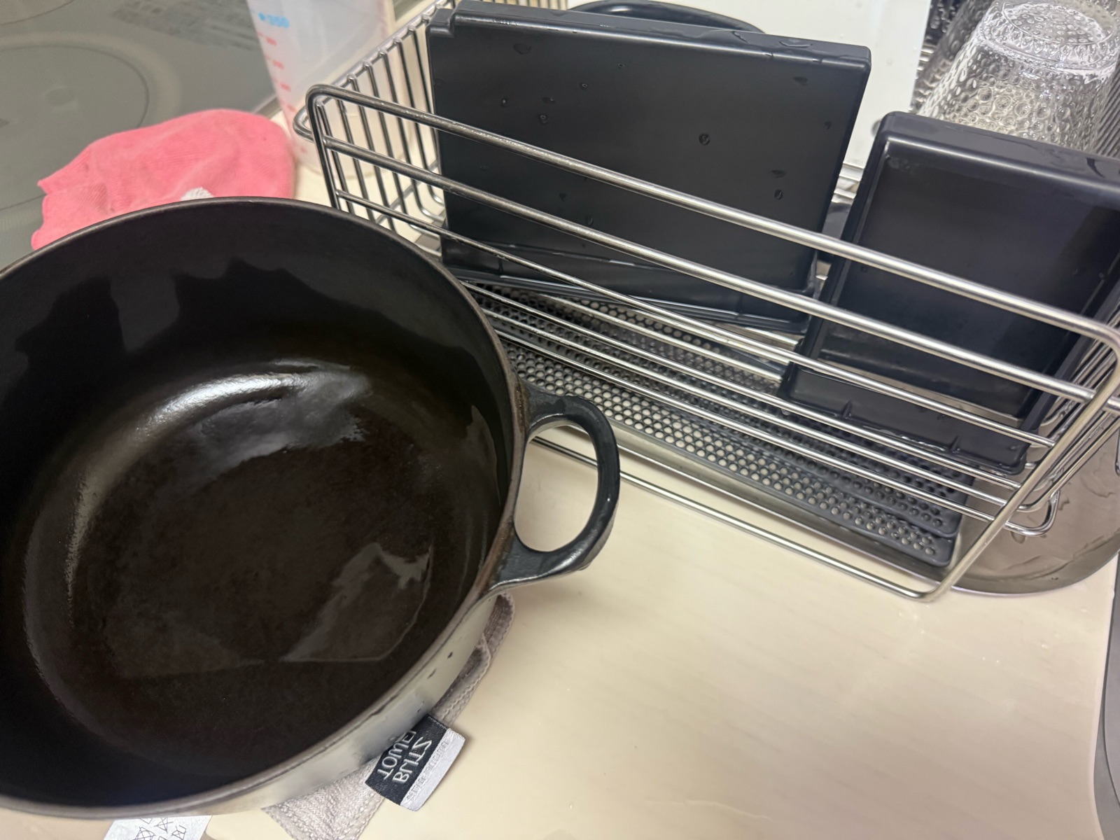 ル・クルーゼのお鍋も・IHの取り外した部品もスッキリしたので、水気を拭き元に戻して