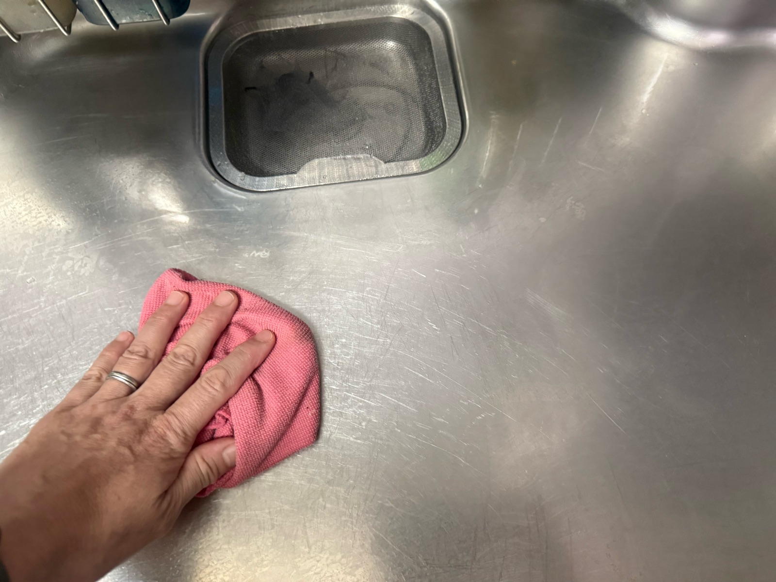 キッチンシンクの水気もしっかりと拭き取り