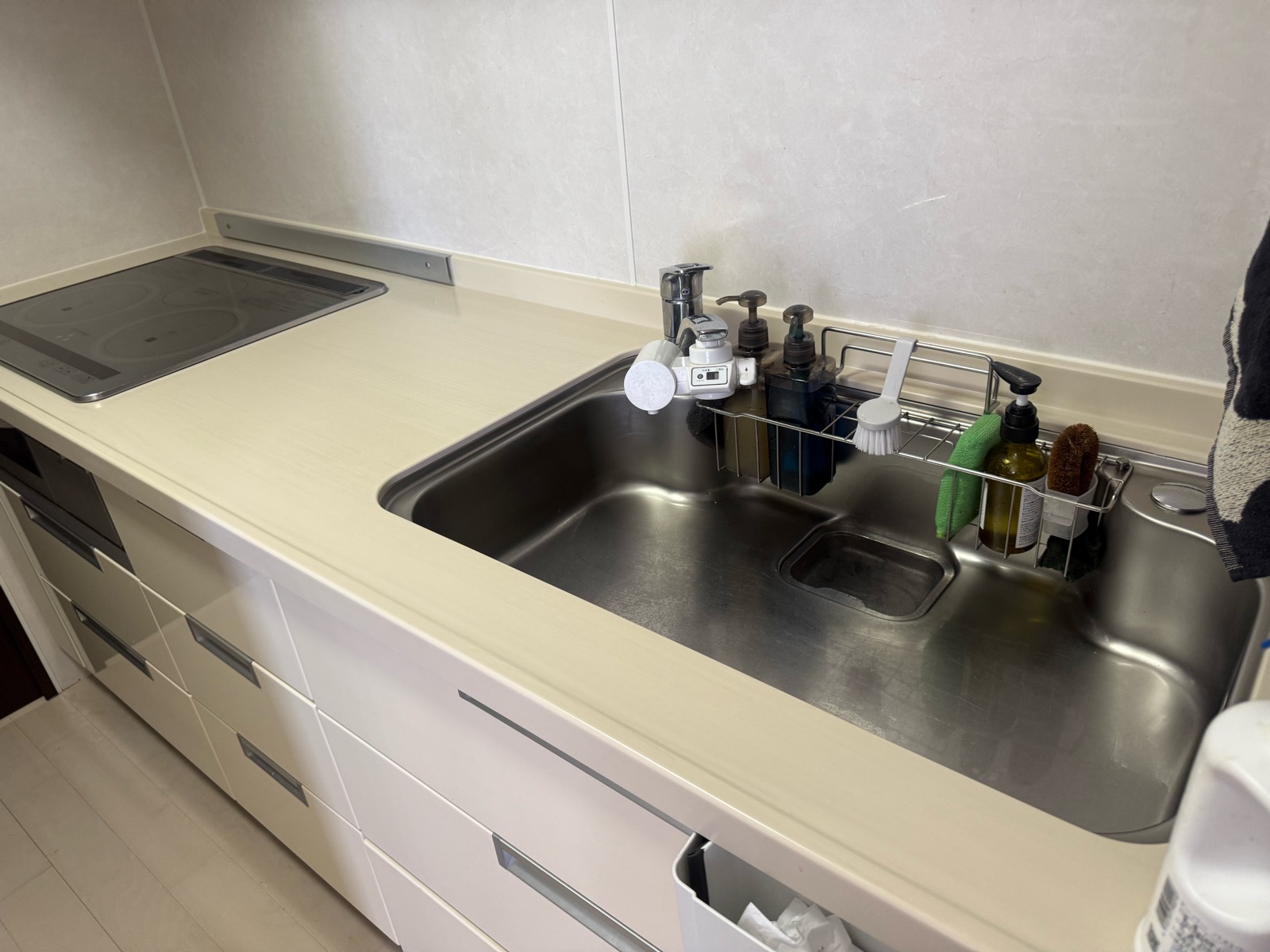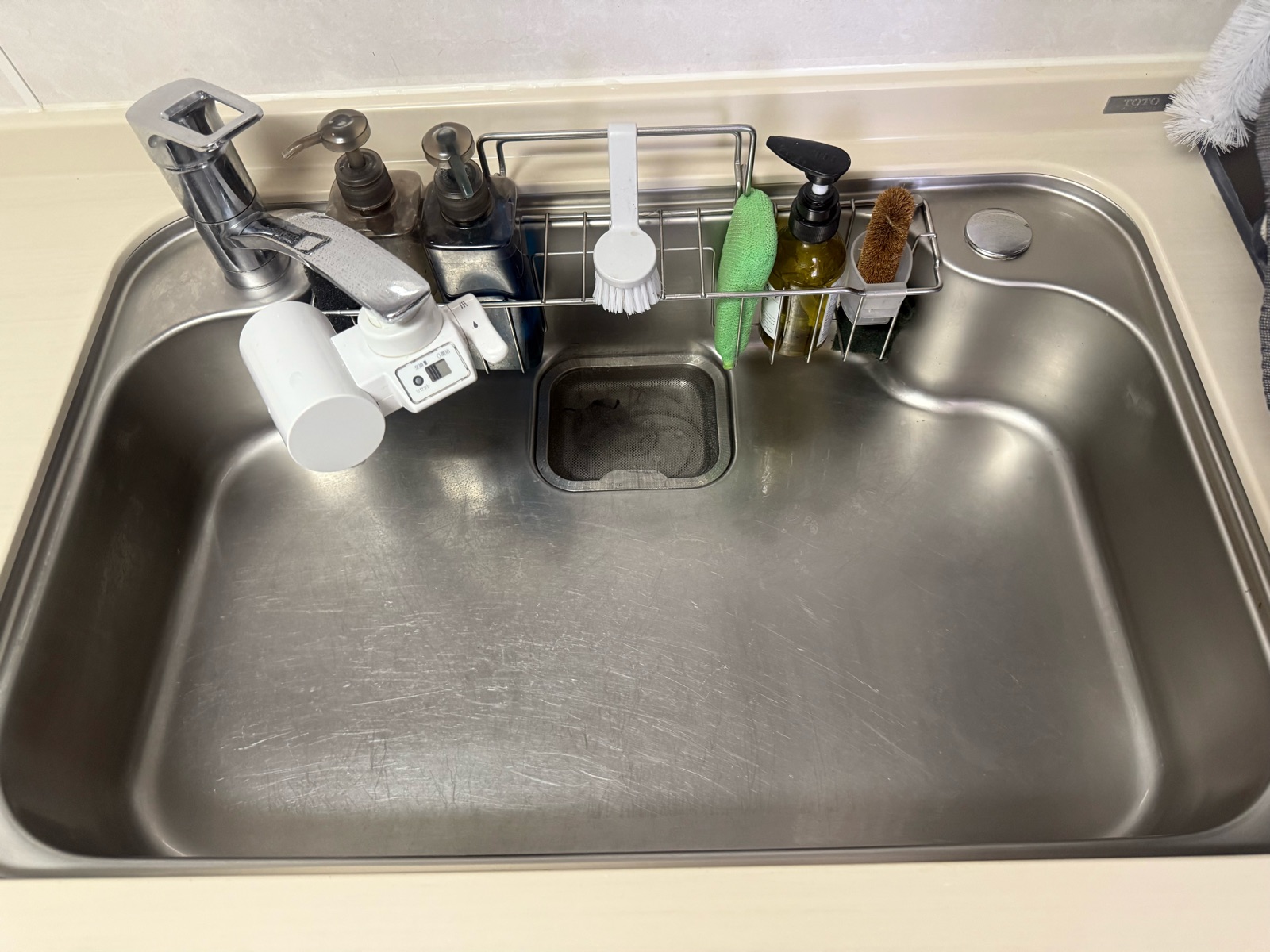 使ったスポンジを捨てる前にキッチンシンクも水洗い。