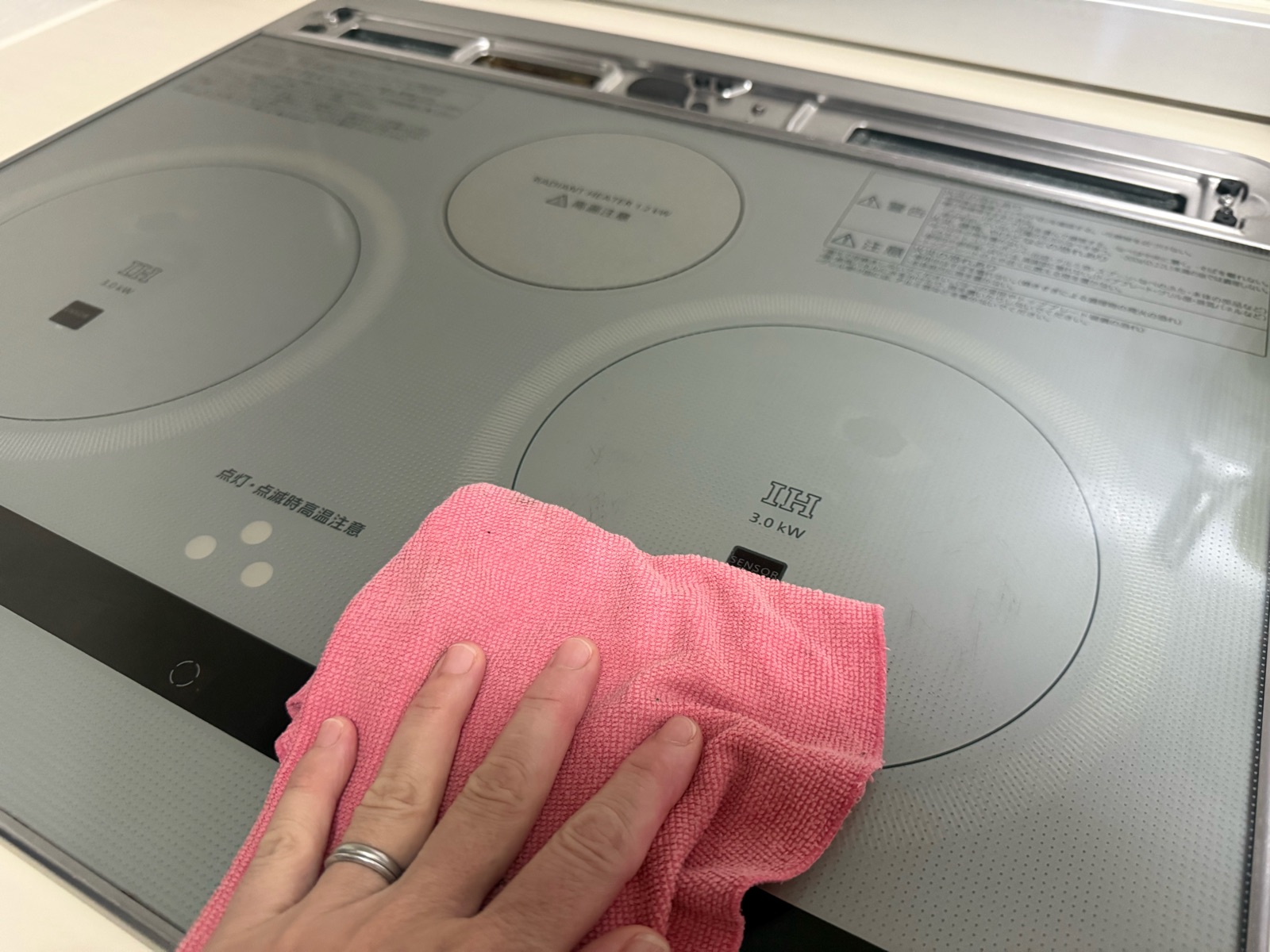 ついでにIHヒーターも、新しいスポンジで重曹+セスキ炭酸ソーダ液で擦り洗いし