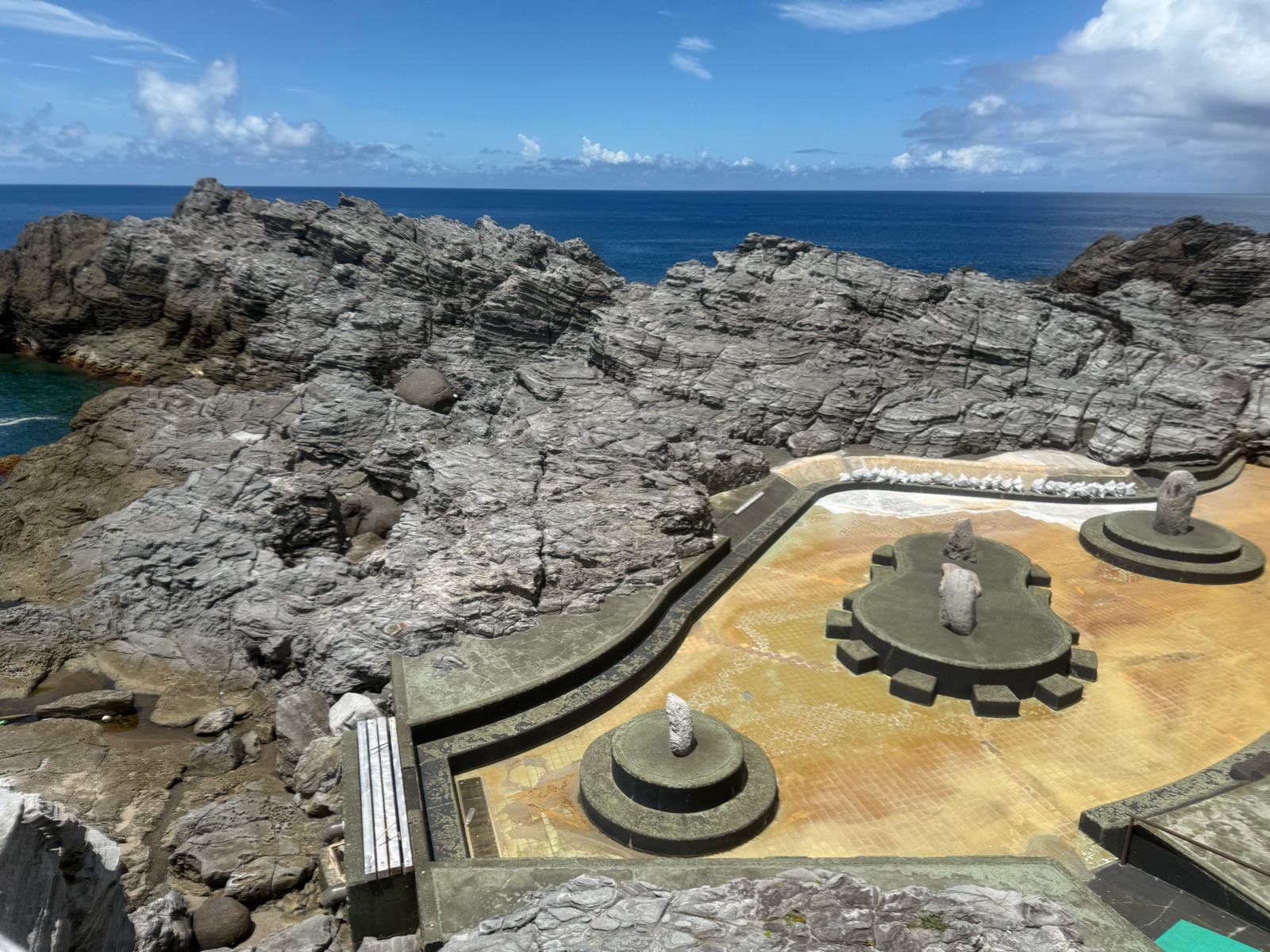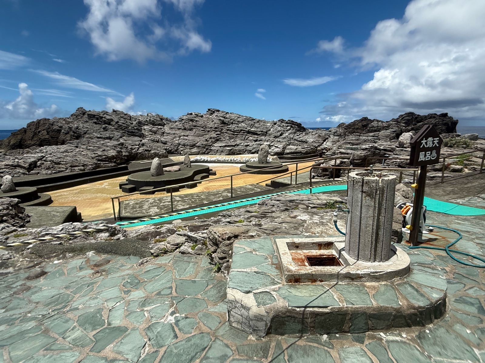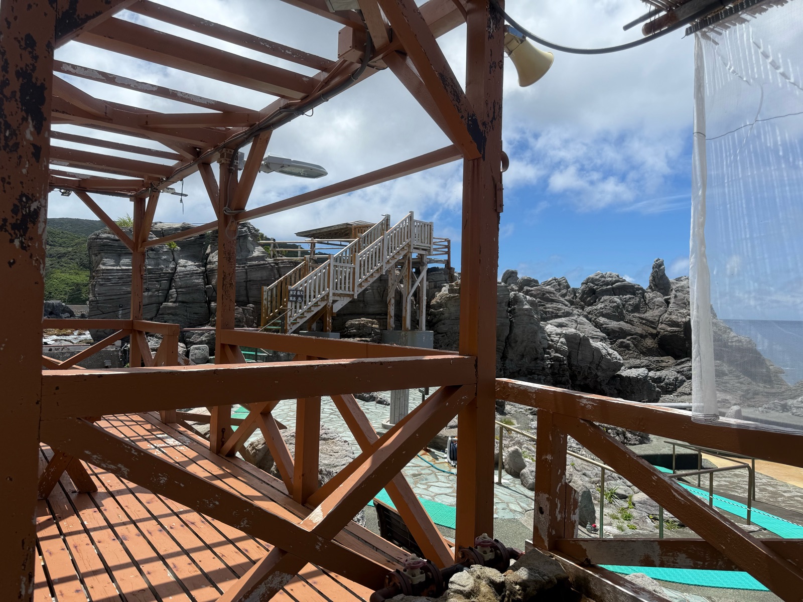 足湯もあり、昨日訪れた「赤崎遊歩道」みたいな木製の階段。