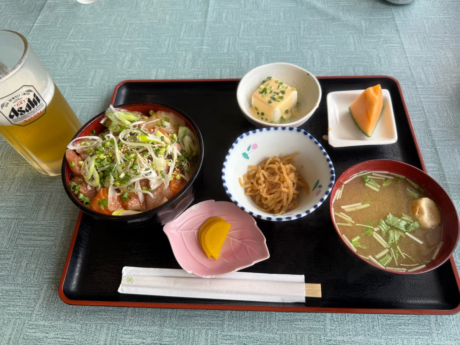 私は漬け丼セット。漬けがハワイのポキっぽいごま油のピリ辛で