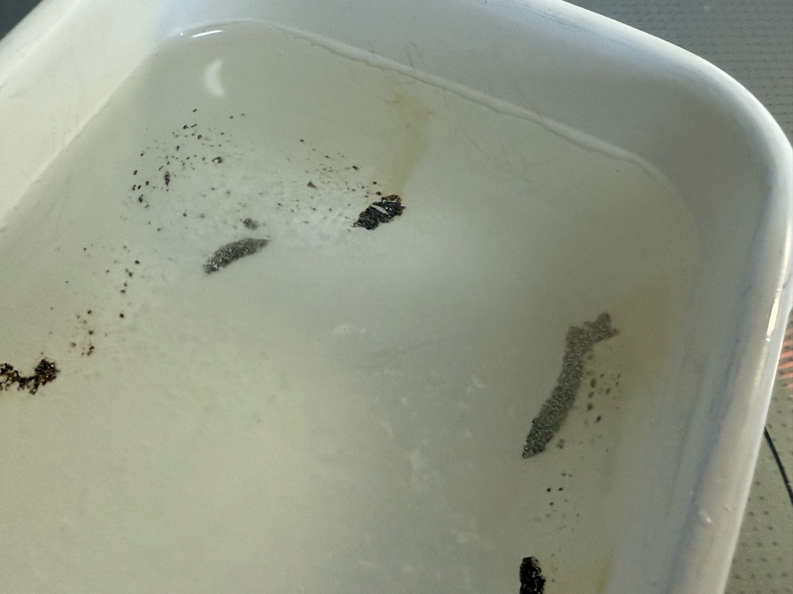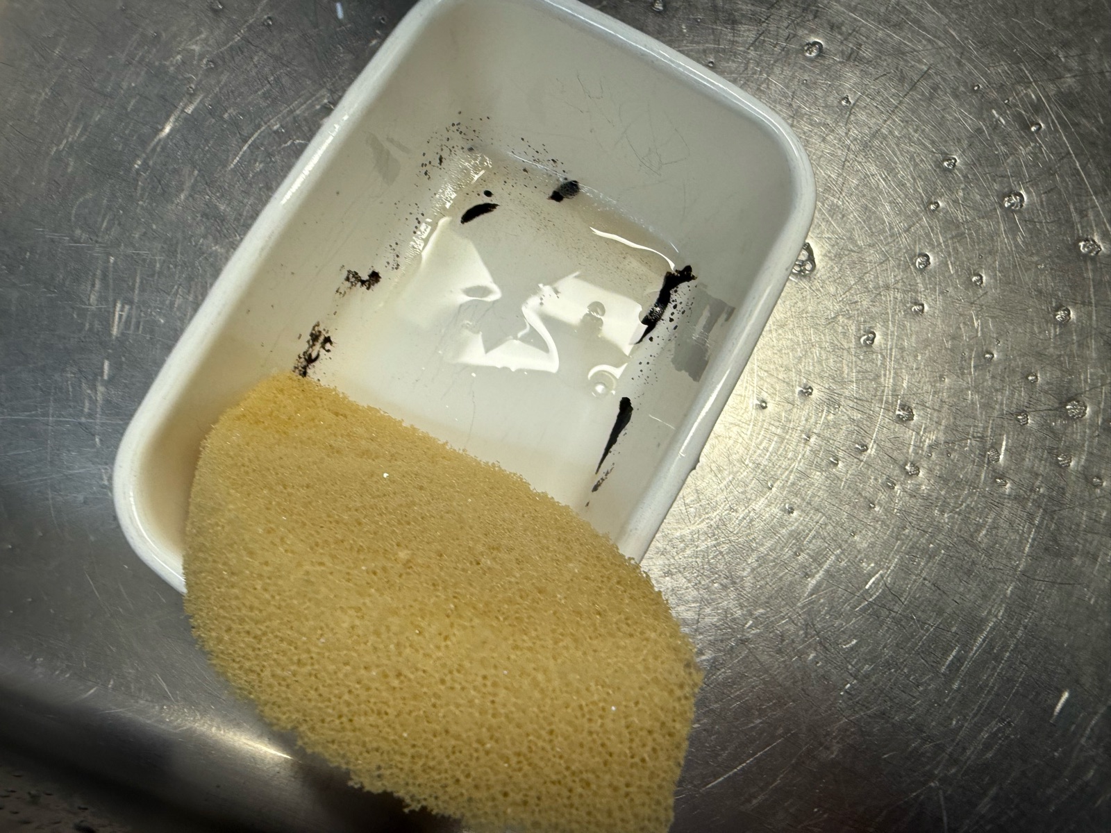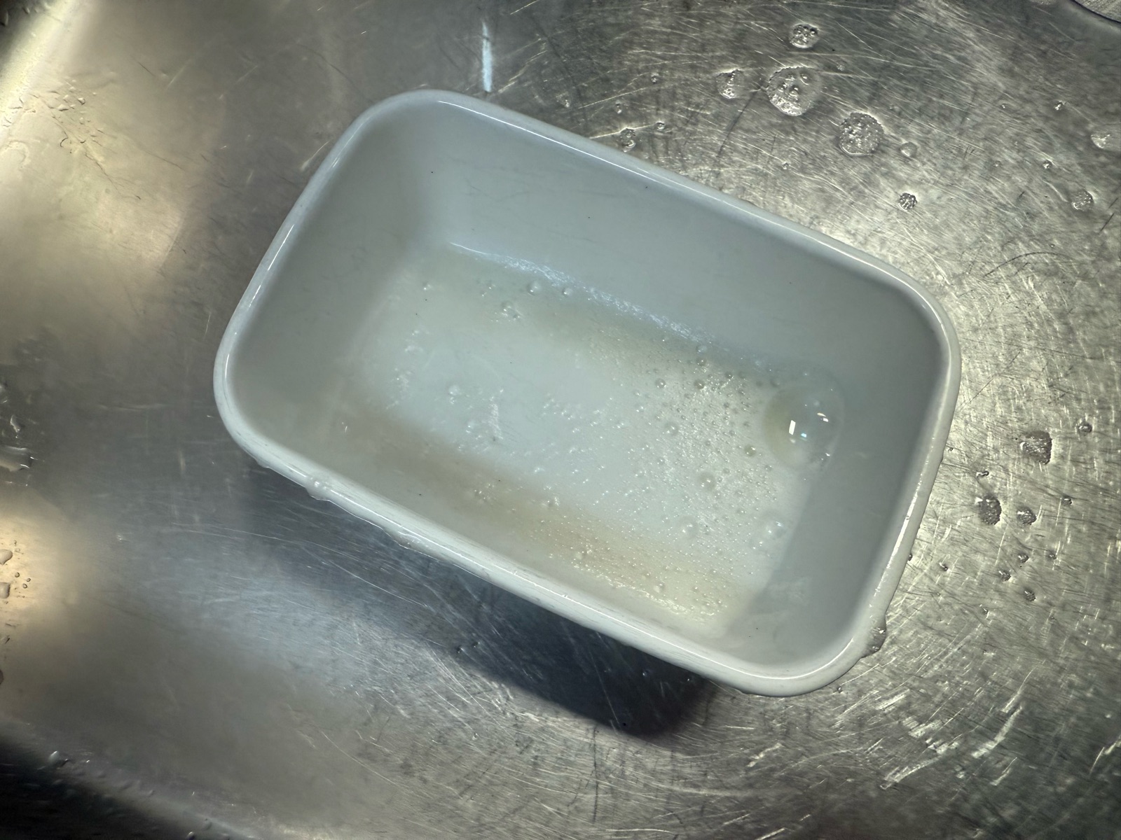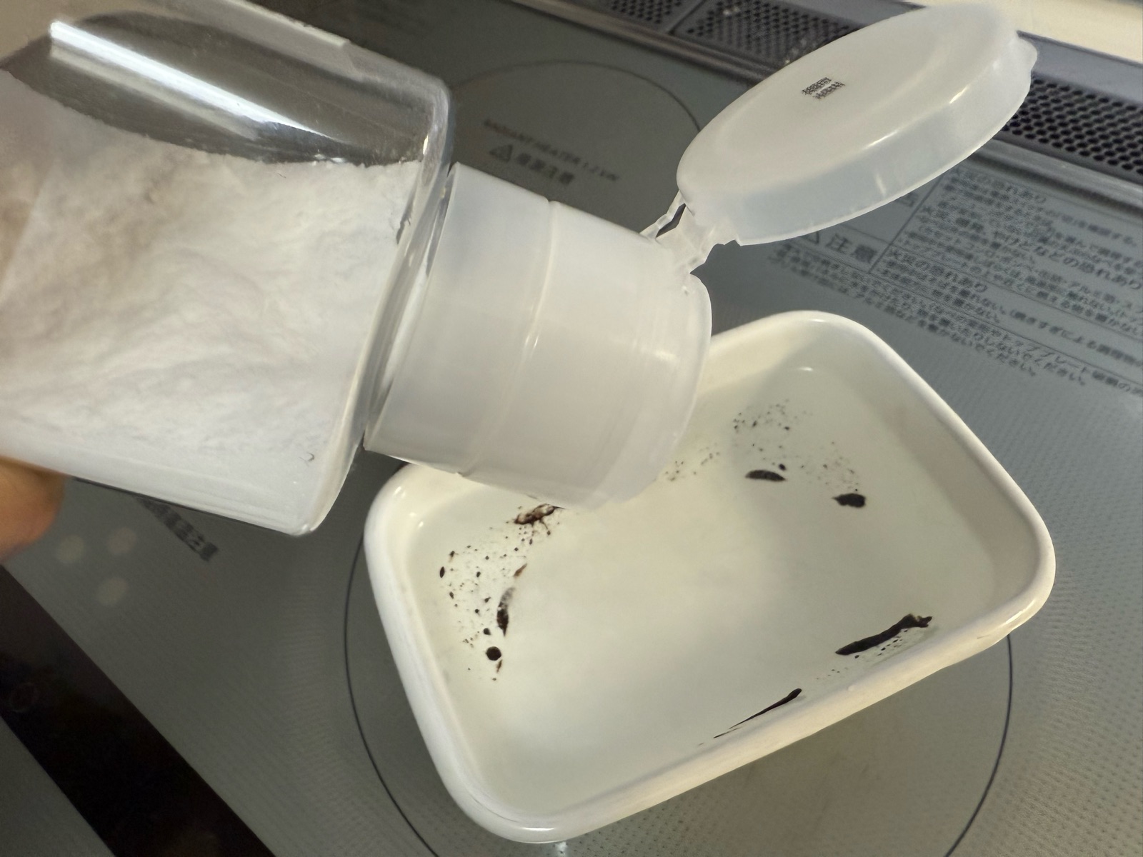 水と台所洗剤を入れた物で一晩漬け置きしたら取れる?と放置してみましたが