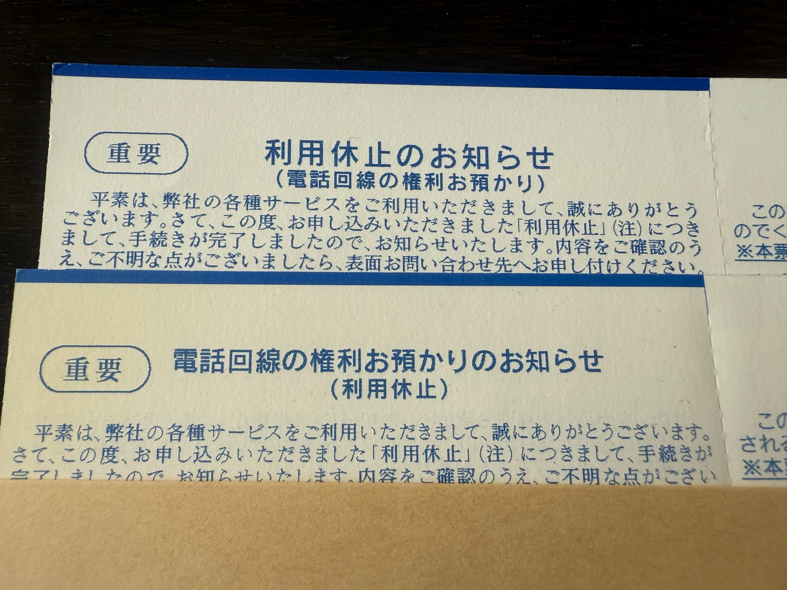 他に残っているのは「休止手続き」をした後に届いたハガキ