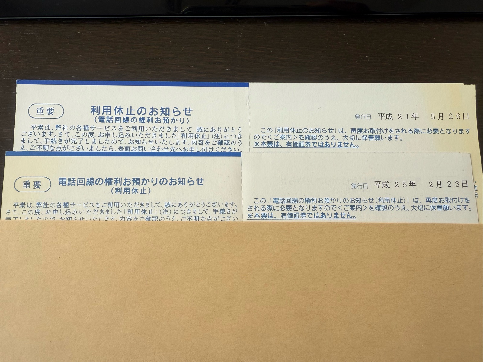 画像では電話加入権の用紙が保険証書みたいな「権利書」っぽかったけど