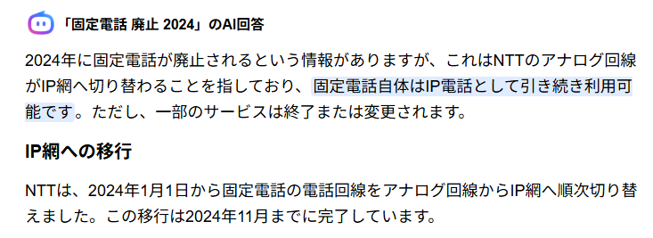 2024年中にアナログの電話回線がIP網へ切り替わる為に「固定電話廃止」って嘘の情報が流れている事も原因のようです。