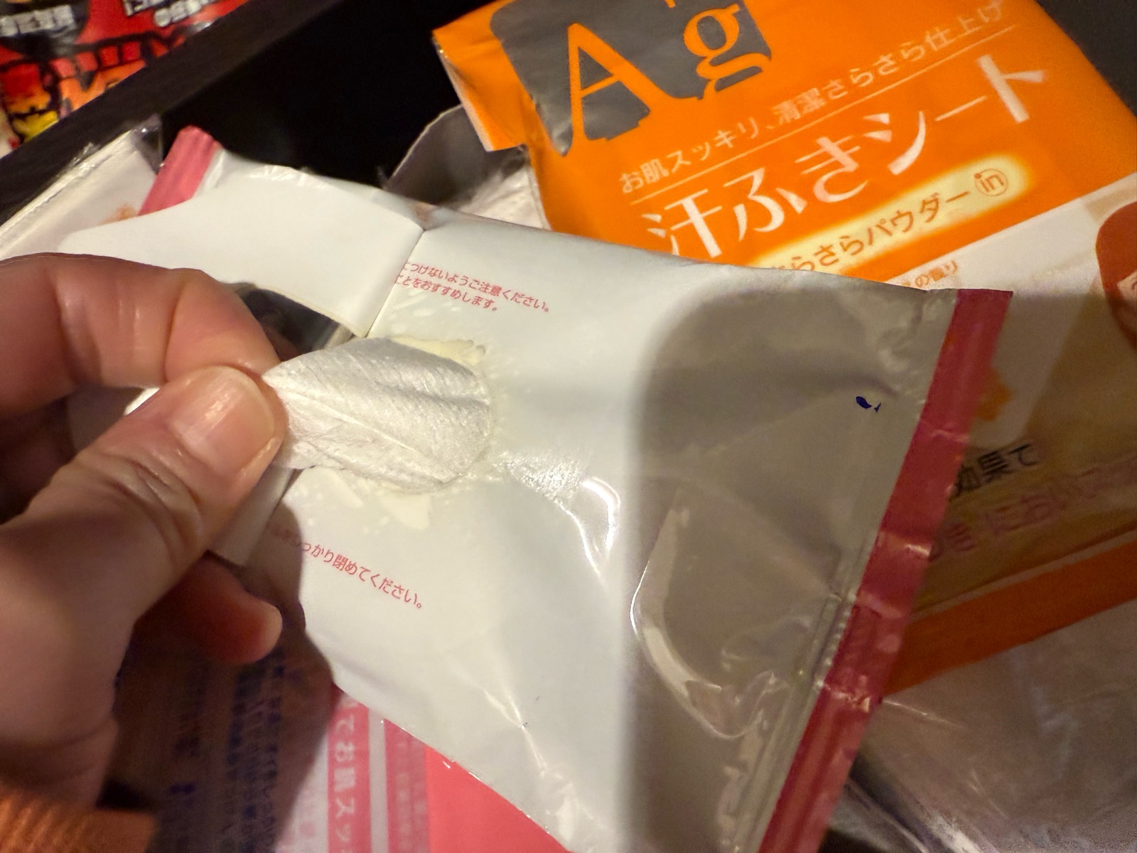 マスクを収納していた引き出しから、汗拭きシートが出てきた。