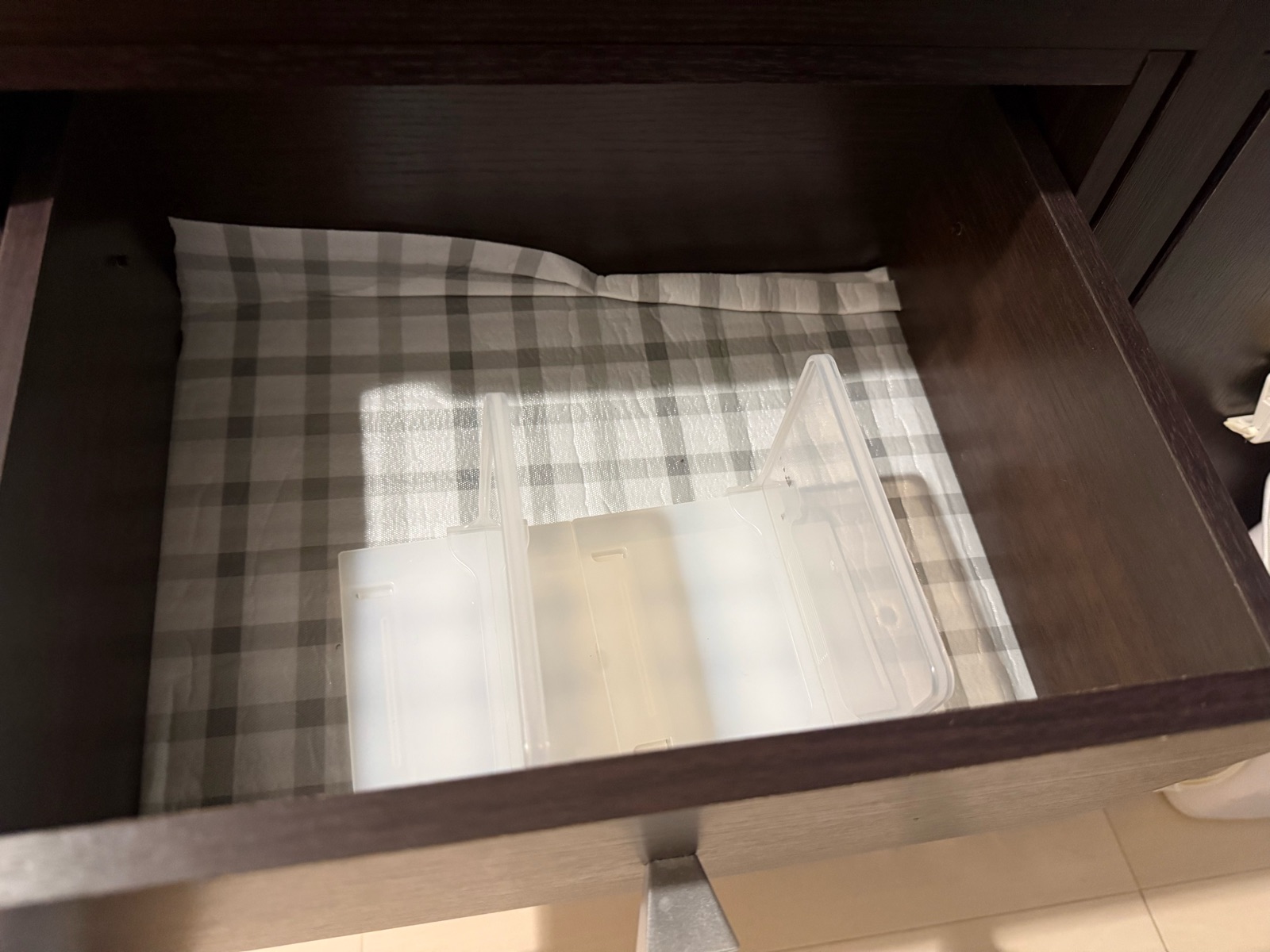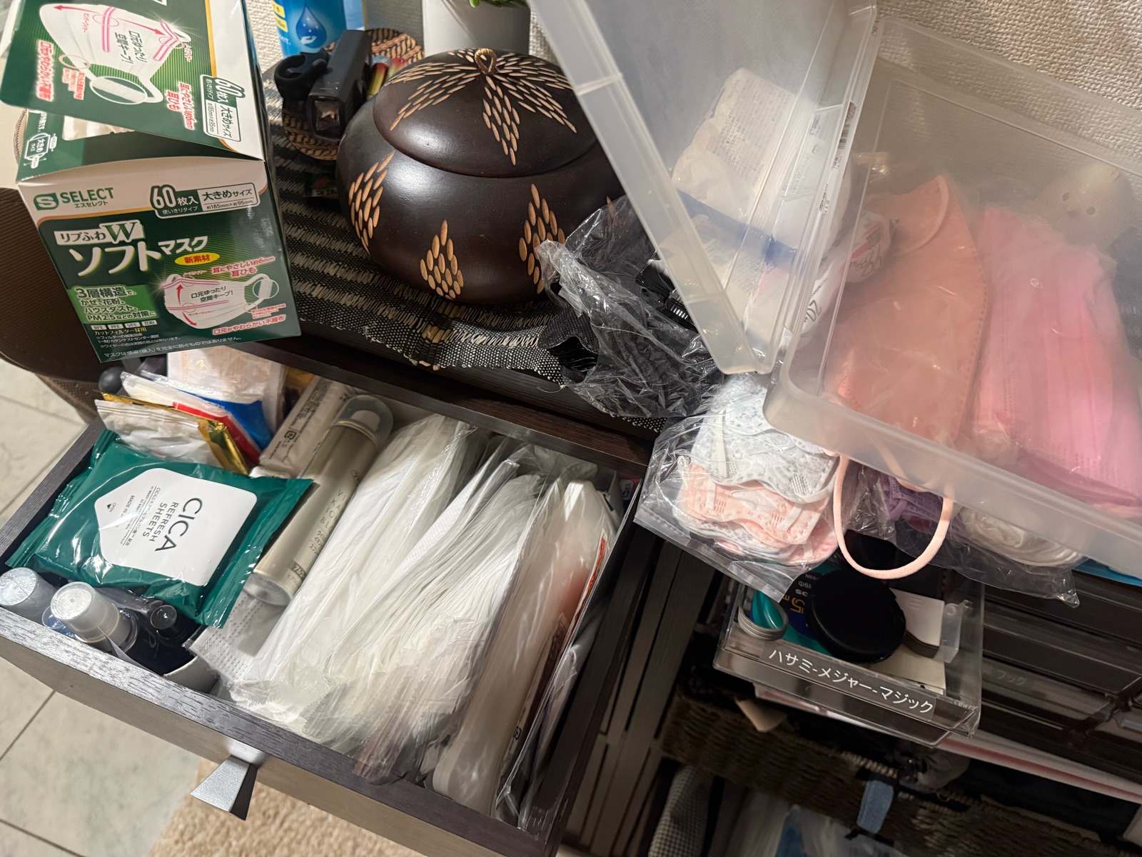 布マスクや予備のマスクを収納していた引き出しが1つ空に。