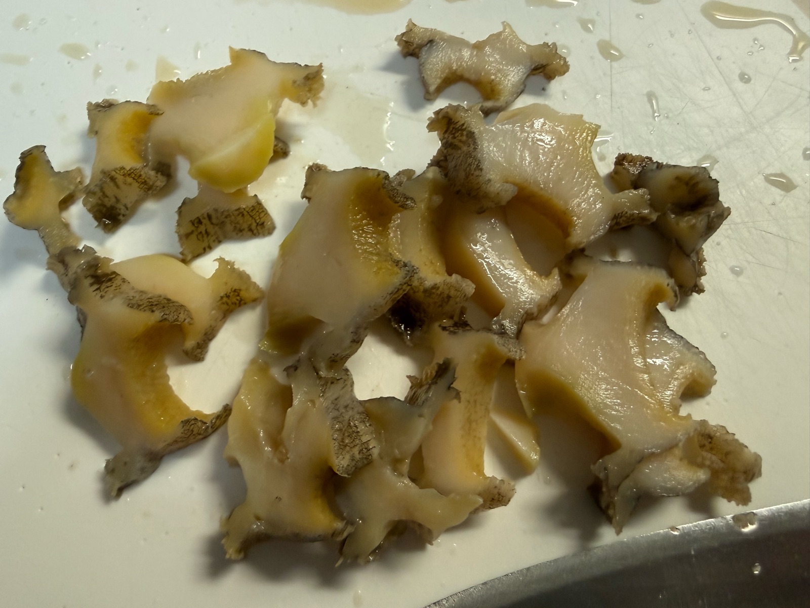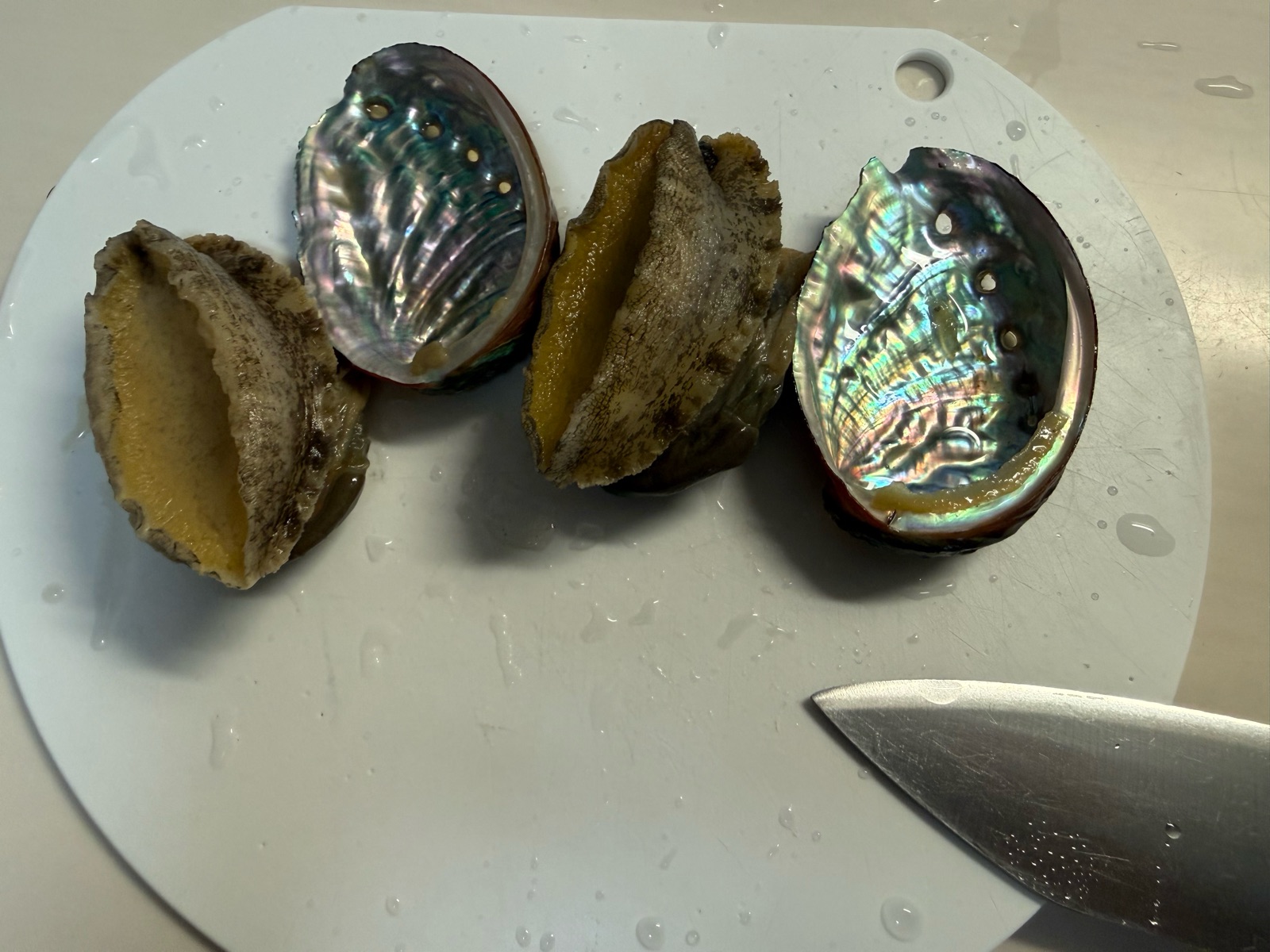 アワビは蒸したものが冷凍されているので、殻から外し、