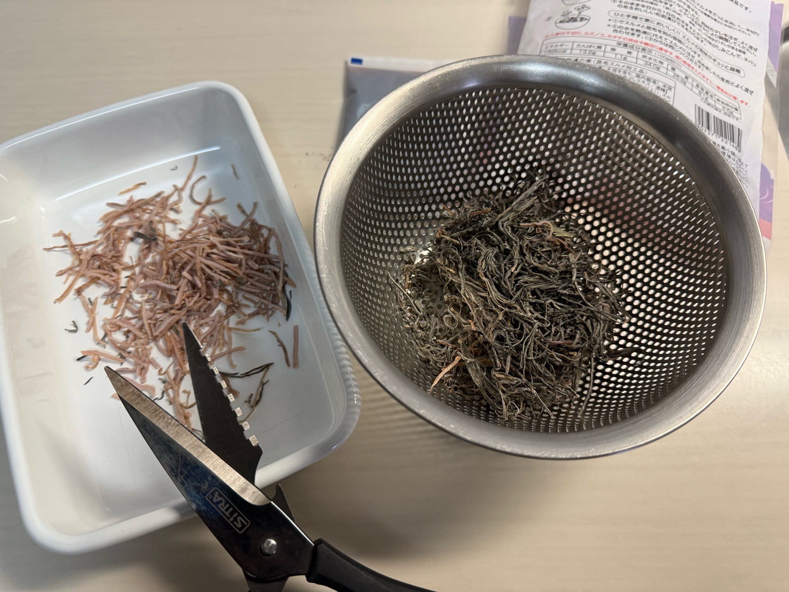 しばらくすると、するめがお湯を吸って柔らかくなってきました。
