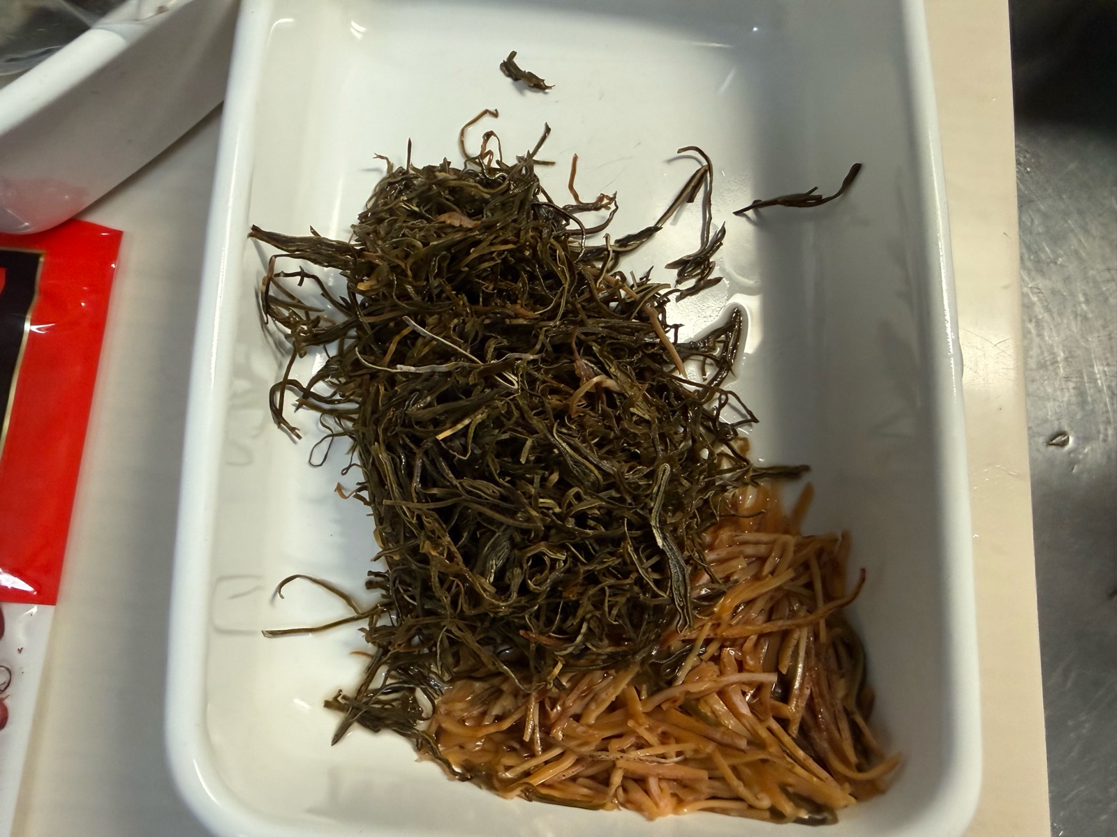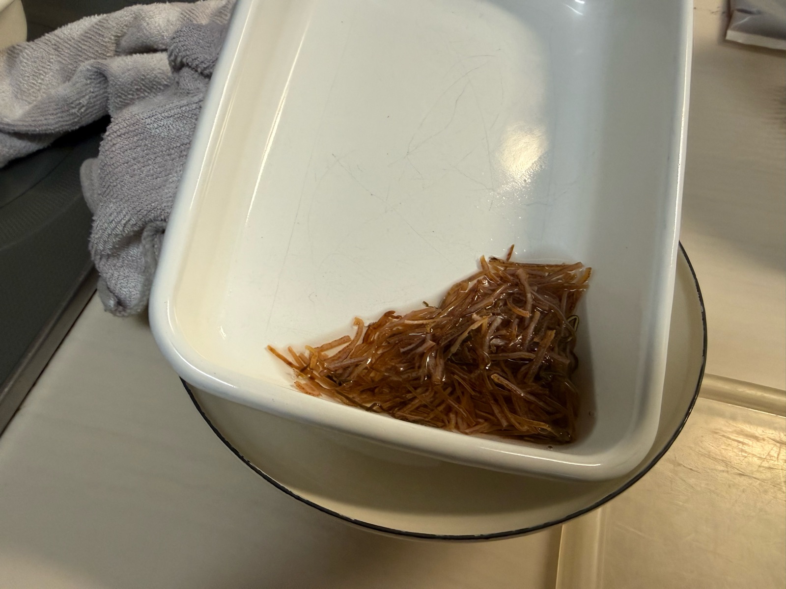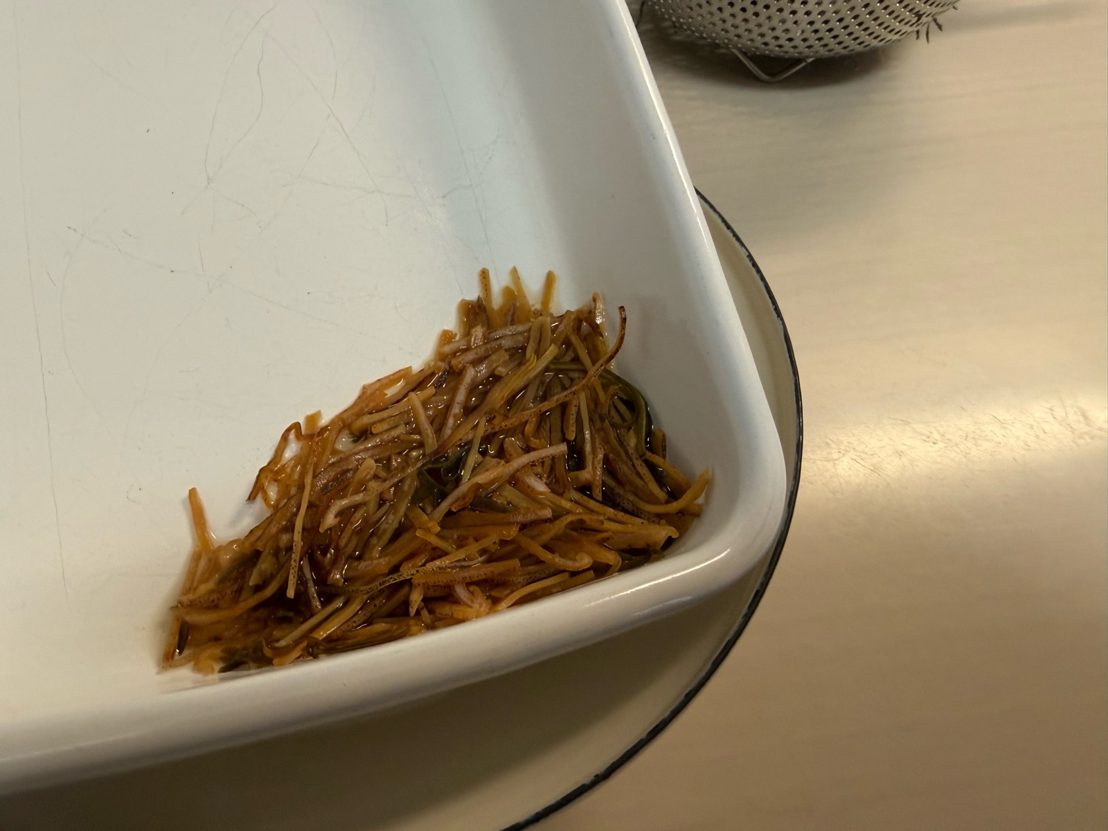 (洗い物を減らすため、松前漬けを作る琺瑯容器を傾けて使用中です^^)