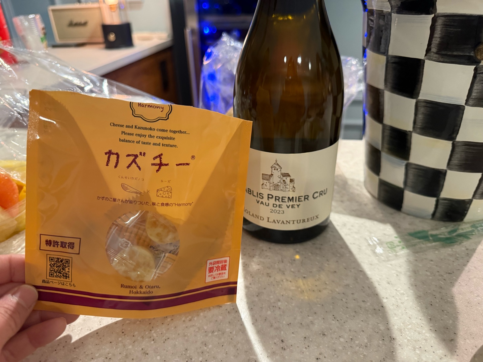私は、頂き物のワインと