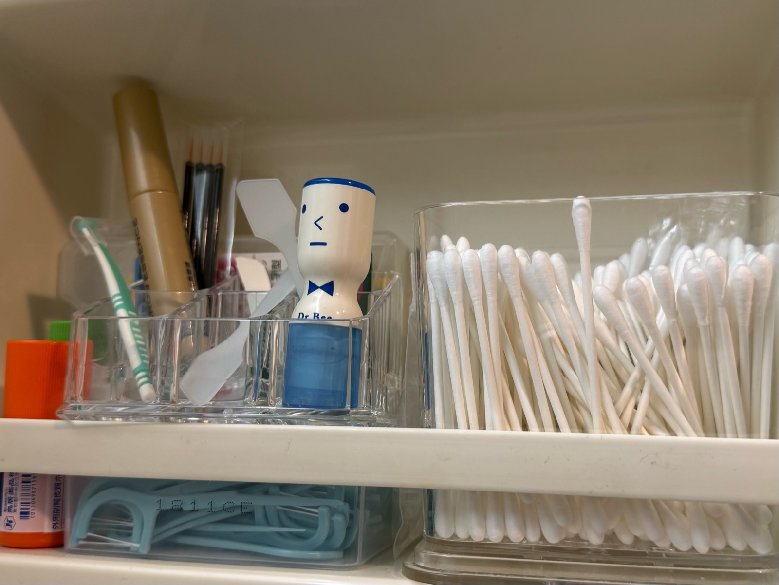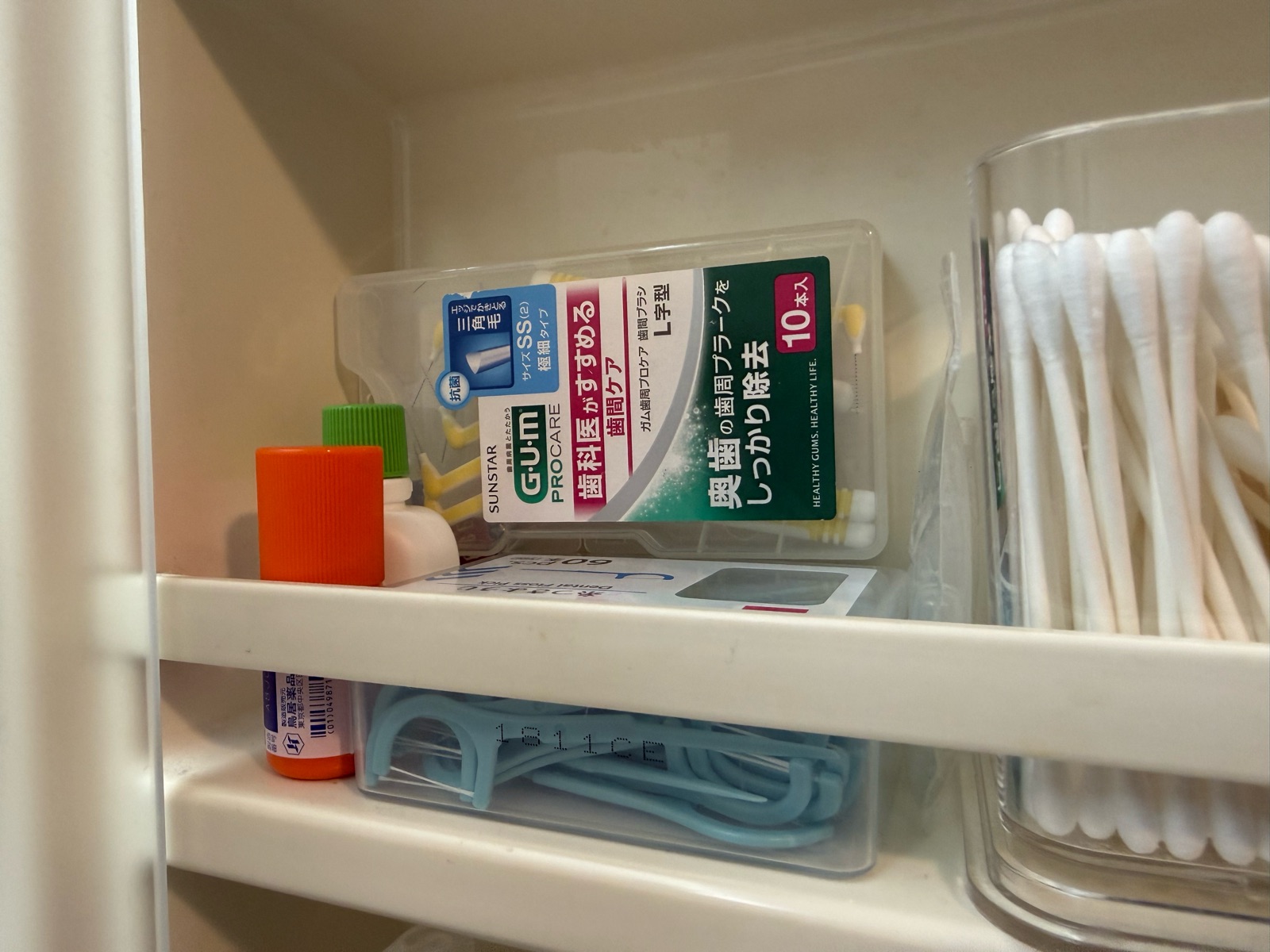 奥に置いている歯間ブラシや、下にある糸ようじを取り出すには……