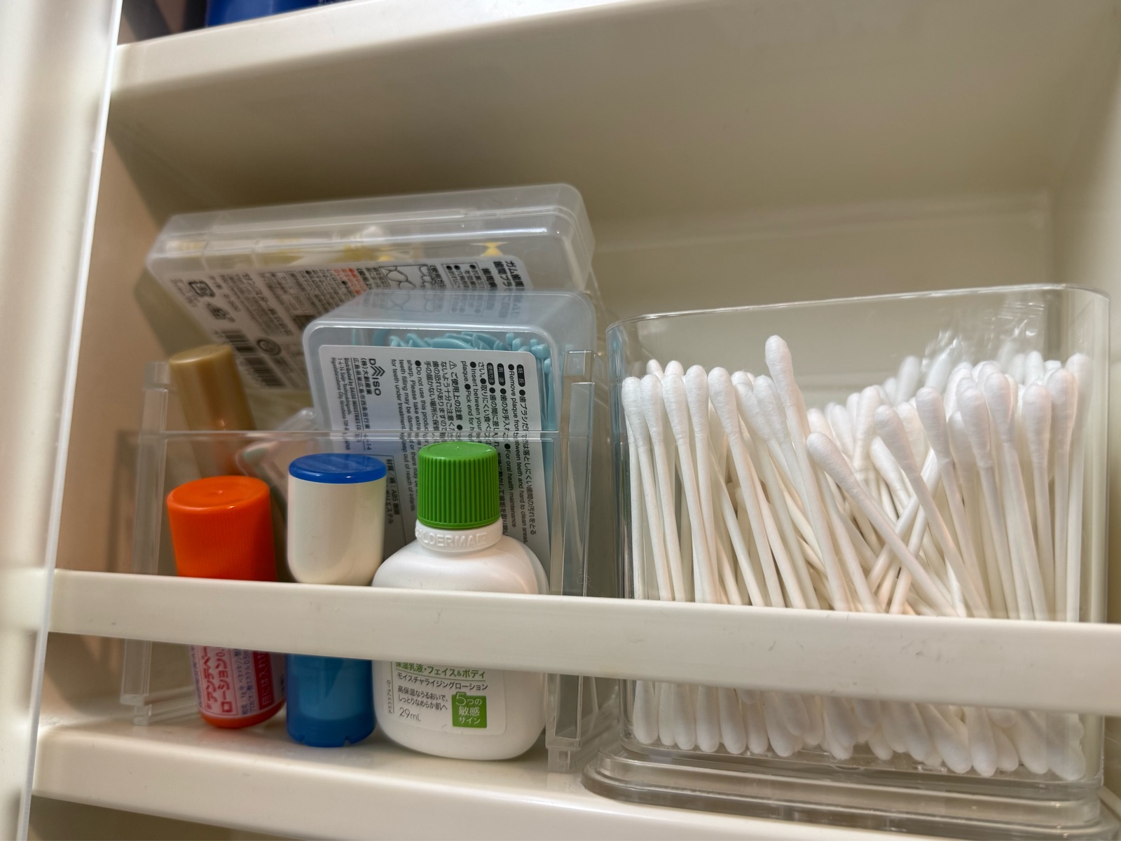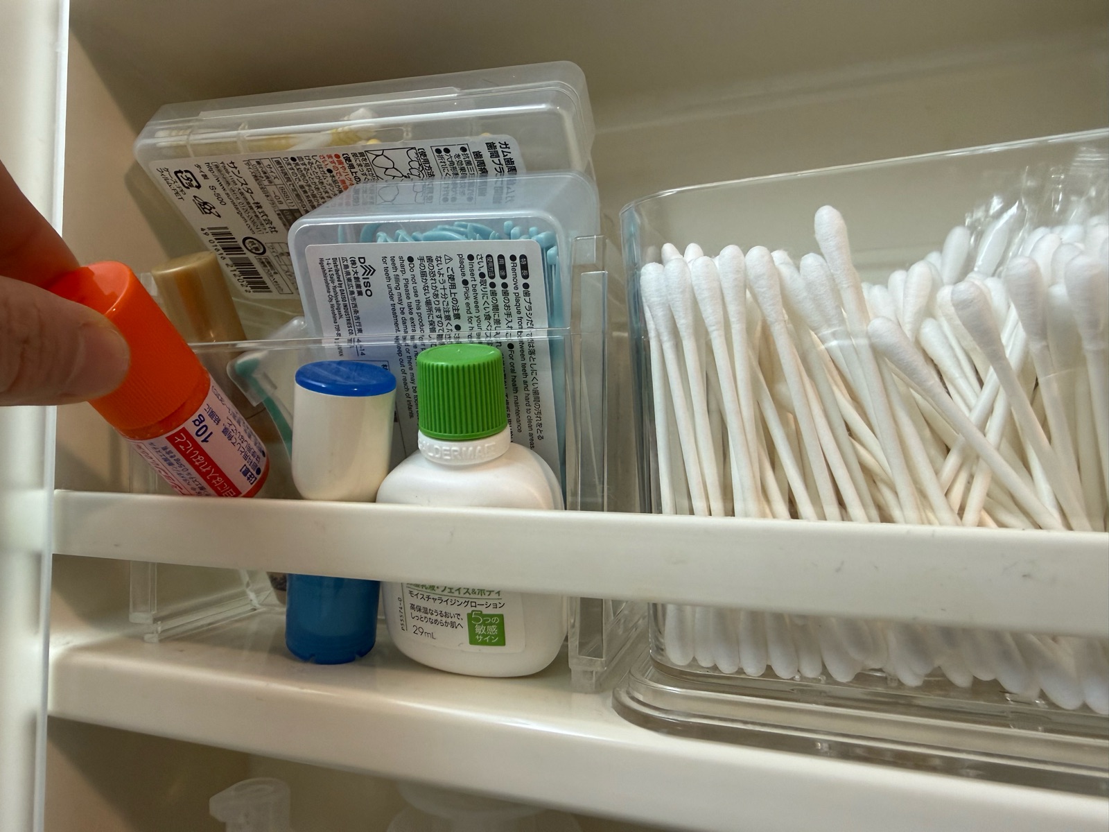 手前の目薬なども、移動させることなく取り出せて——