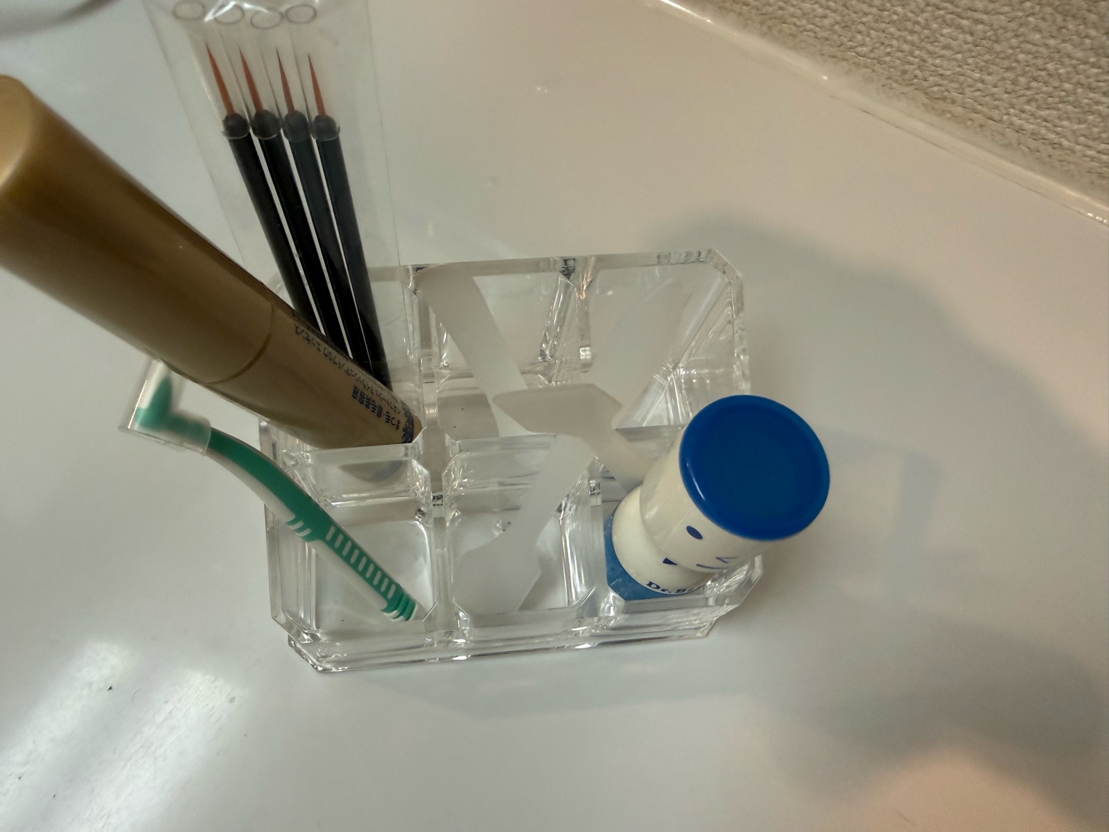 さらに、ナナメスタンド下の空間には、小さな目薬などを入れてみました。