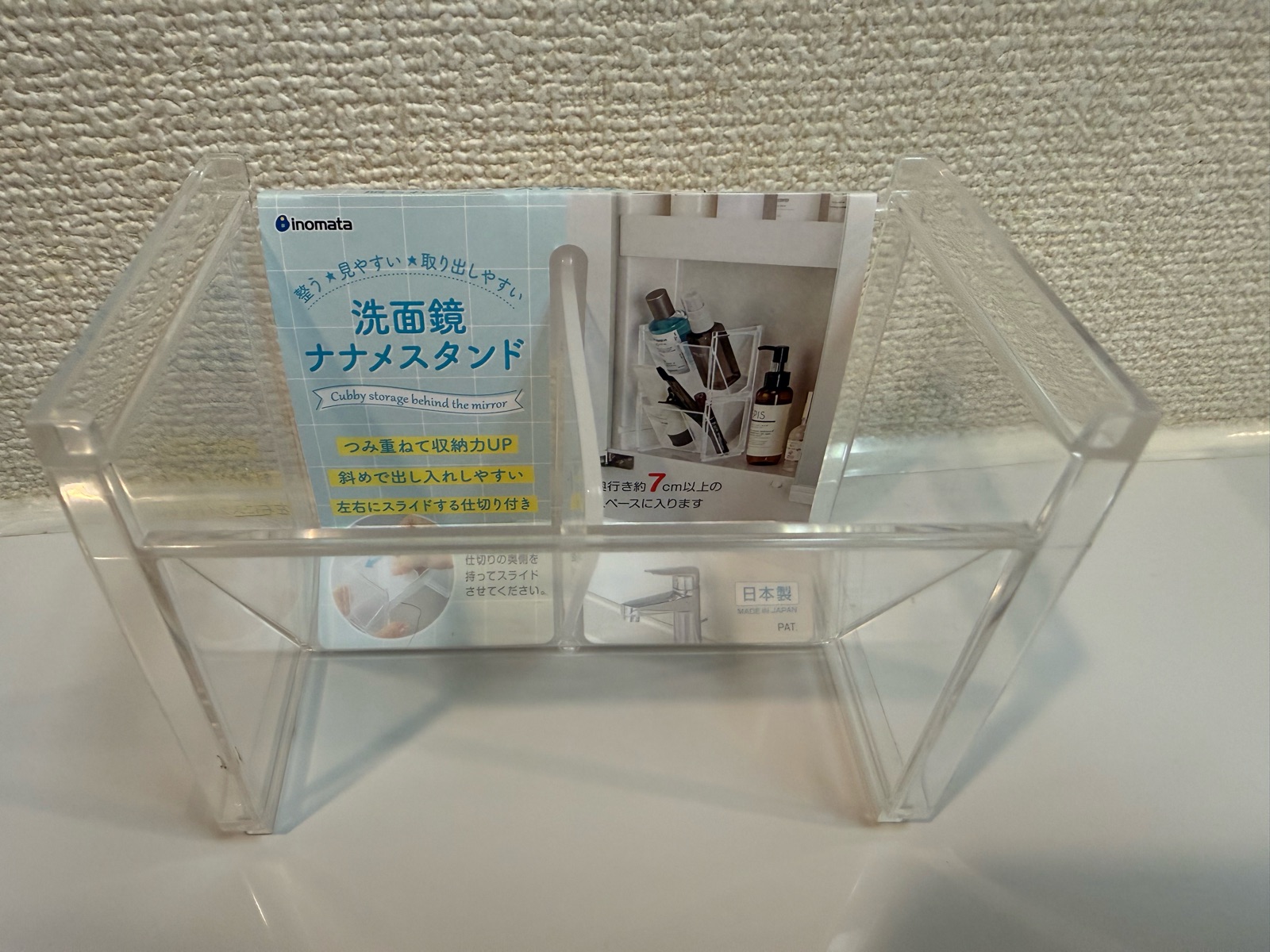 キャンドゥの「洗面鏡ナナメスタンド」に収納を変更。