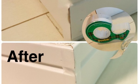 全ての場所に貼るべきでした。巾木の角にメンディングテープ!