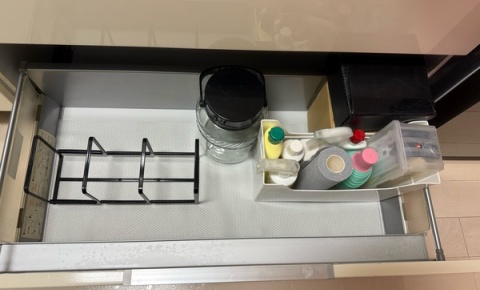 こんばんは。今年の梅仕事も無事に終え 梅仕事に使っていた巨大な容器、キレイに洗ってしっかり乾燥させて元のシンク下引き出しに戻そうとした所で”掃除しよう!”と思い立ち今日の【1日1ヶ所】は「シンク下引き出しの掃除と整理収納」は~い。引き出しの中を全部出し。掃