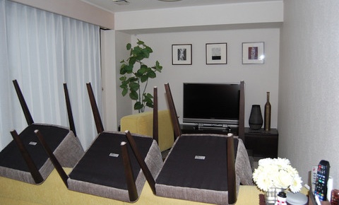 こんにちは。引っ越して来てから届いたテーブルセット コレ↓ イスのデザインがひじ掛けと背もたれが一体と言えば良いのか?ちょっと不思議なかたちなので、テーブルに逆さに置く事が出来ず。最近やっとたどり着いたのが コレ↓(* ̄m ̄)プッ イスを逆さにして”よいしょ”